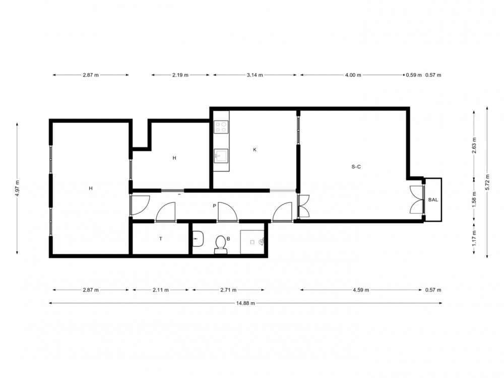 Apartment with 60sqm of private gross area, consisting of a living room, 2 bedrooms (one interior) kitchen and 1 bathroo...