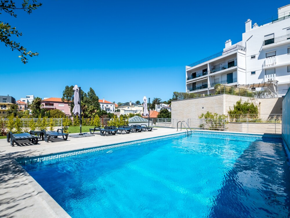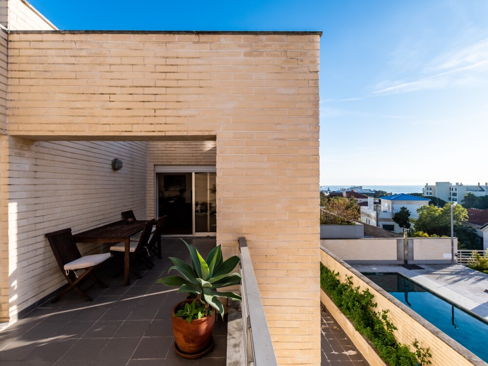 4+1-bedroom triplex apartment, 225 sqm gross construction area, sea view, with garage, in gated community with pool, located in the heart of Estoril, Cascais.