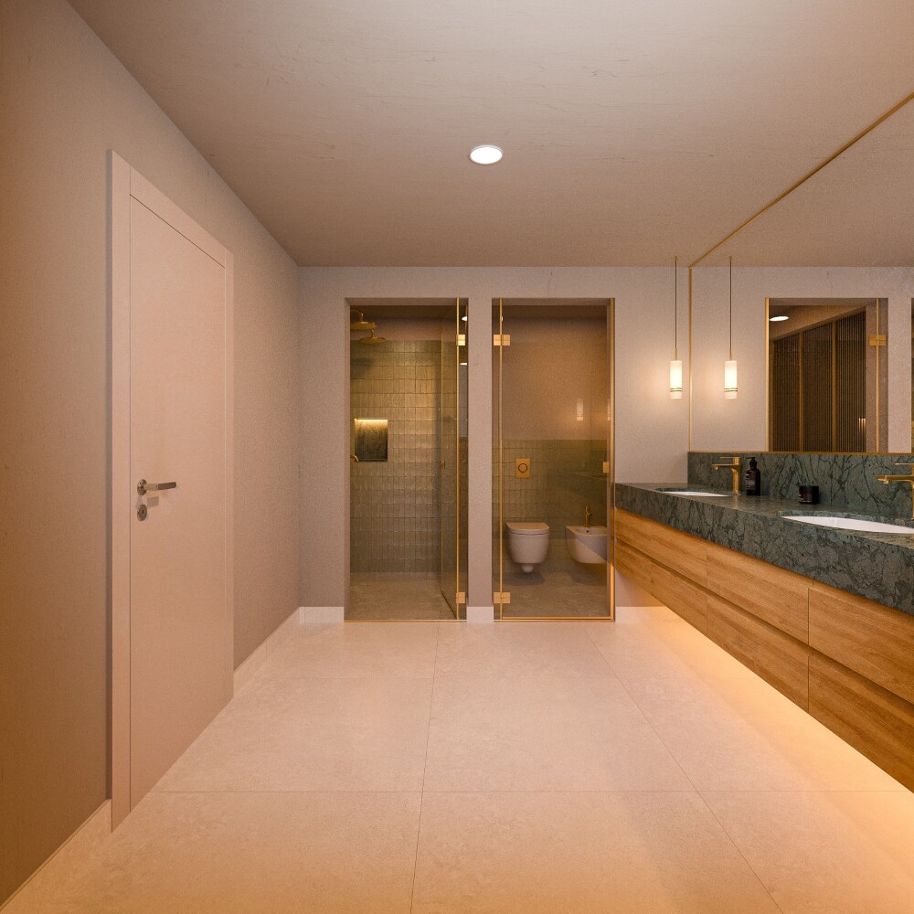 The organization of interior spaces and careful selection of finishes reflect exceptional architectural quality.