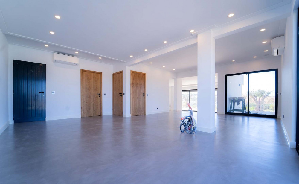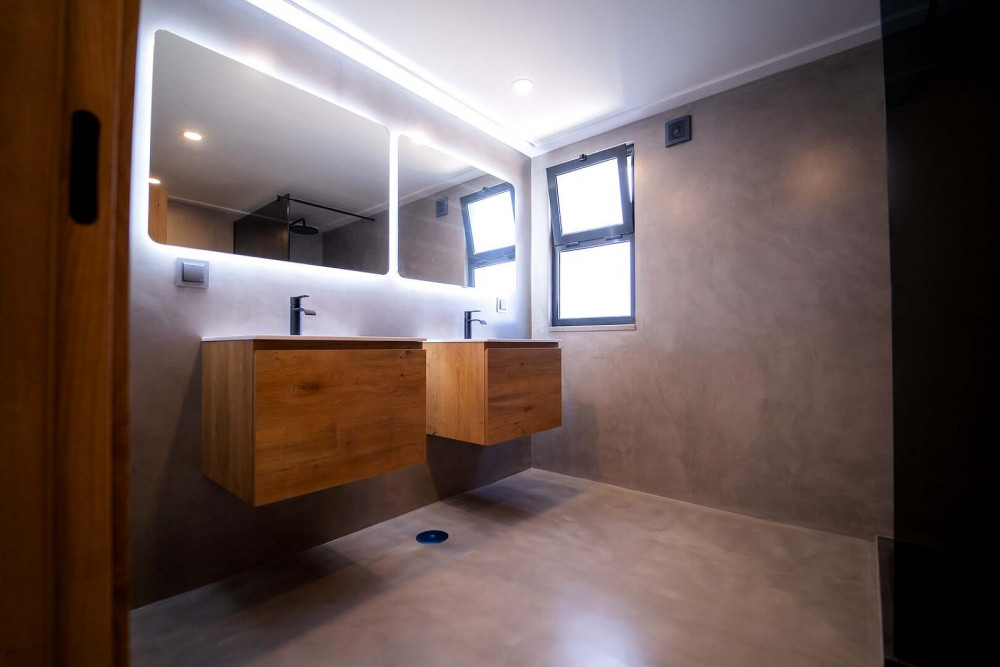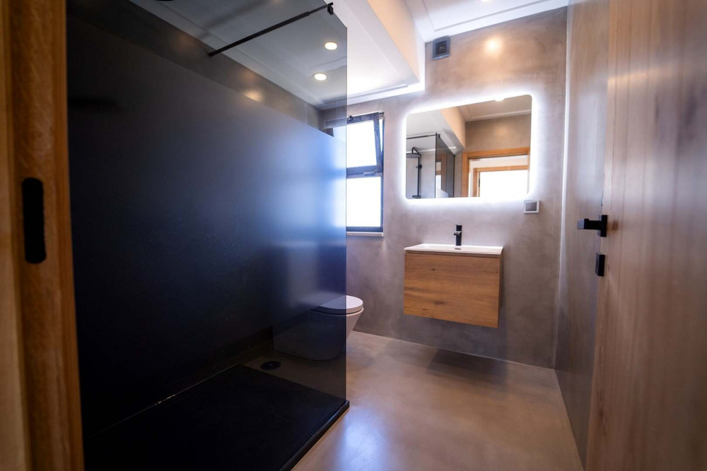 Solar panels and micro-cement finishes in floors and bathroom walls