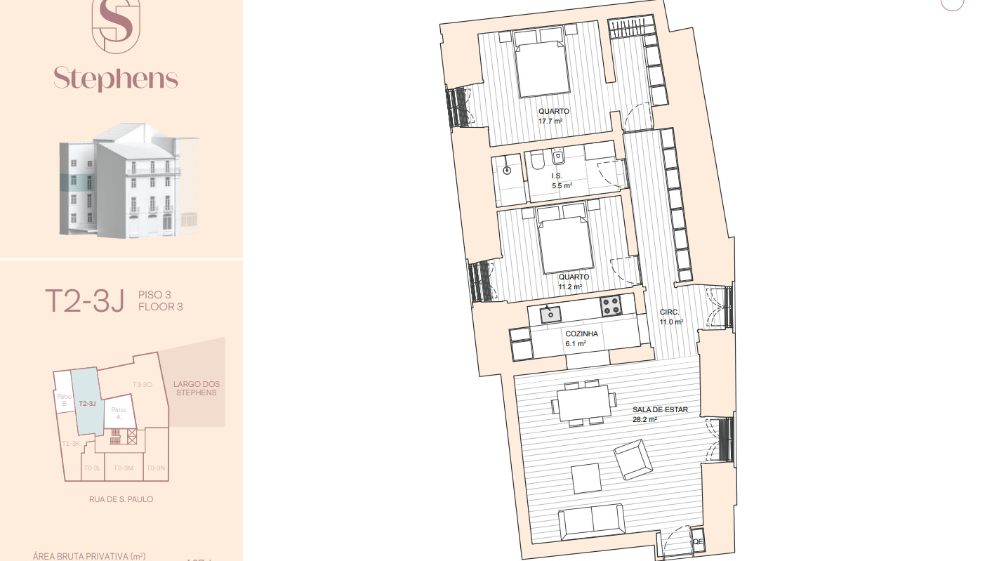 Located in one of the most sought-after and vibrant areas of the Portuguese capital, Stephens offers its residents a unique opportunity to live immersed in history while enjoying all the advantages of a premium urban location. It is just minutes away from some of the city's most iconic landmarks, as well as a wide range of cultural attractions, renowned restaurants, sophisticated shops, and relaxing green spaceselements that define the true essence of Lisbon living.