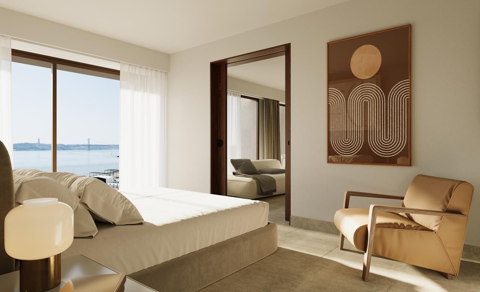 The balconies with a frontal view of the river provide a unique experience, where the serenity of the Tagus becomes part of everyday life.
