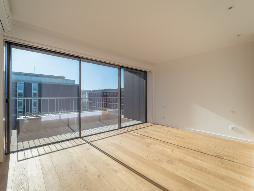 4 bedroom flat, on the top floor, with 177 m2 and an outdoor area of 90 m2, inserted in a new development in Matosinhos Sul, just 600m from the beach.