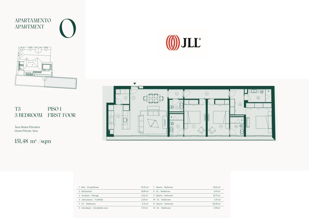 3-bedroom apartment with 151 sqm of private gross area and one parking space, set in the new development located in one of the noblest areas of the city, in Belém, Lisbon.