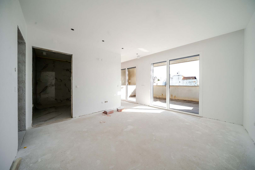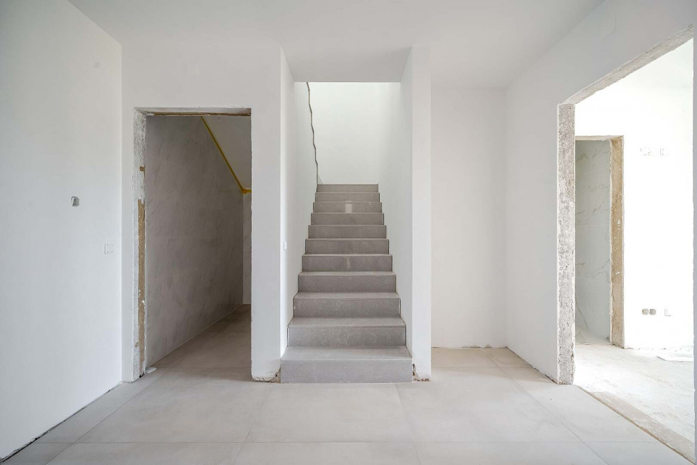 The upper floor offers privacy and a well-organised bedroom zone with a master suite bedroom with private bathroom, a second bedroom with terrace access, an additional TV room or office that can serve as a potential third bedroom, a shared bathroom, a storage room and a circulation hall with a staircase. Several rooms benefit from terrace access and open views.