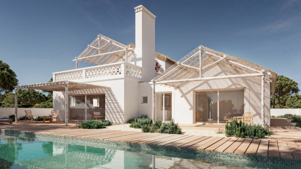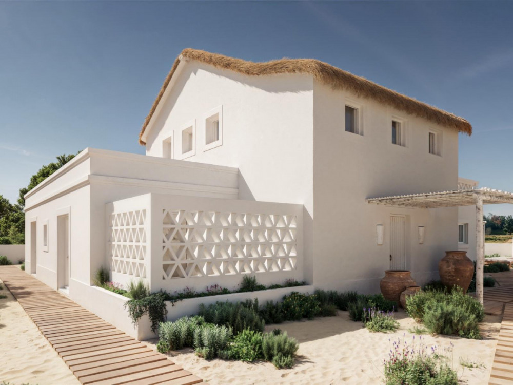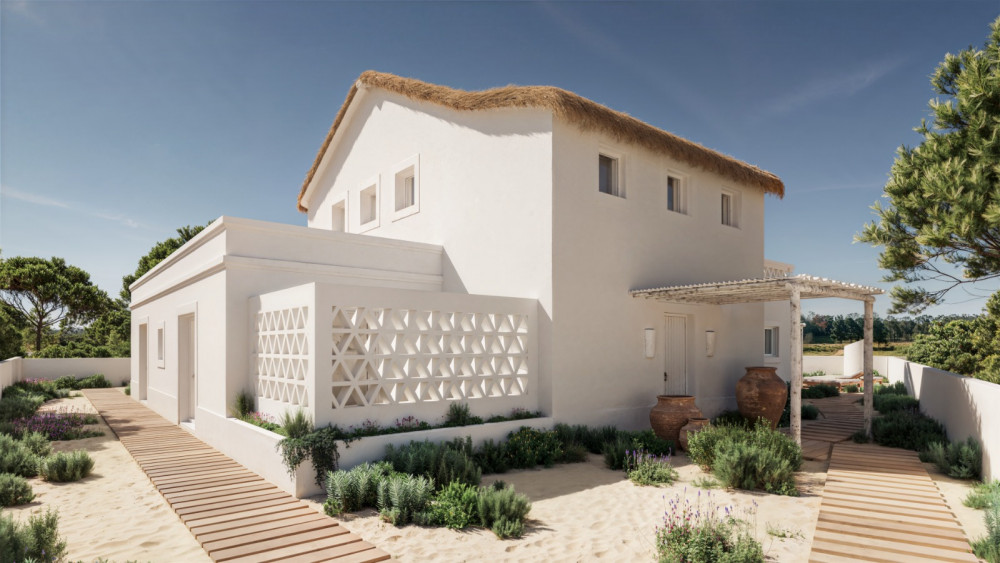 4+1 bedroom villa in Comporta, municipality of Alcácer do Sal, with 220 m² of floor area, set in a plot of 771 m², in the final stages of construction. This property features an architecture inspired by the traditional houses of the region, combining four suites, an additional living room, five full bathrooms and large social spaces, complemented by a private heated pool and panoramic views of the natural landscape.
