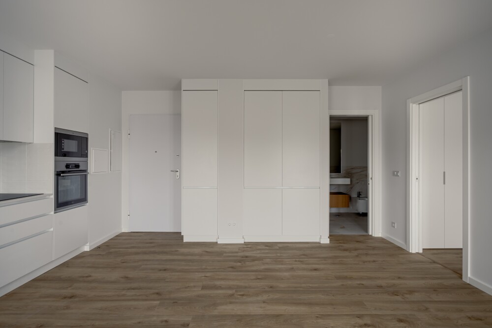 1-bedroom apartment with 51 sqm of gross private area, balcony, one parking space and storage room, in the Jaba condominium, in Barreiro.The apartment consists of an open space liv…