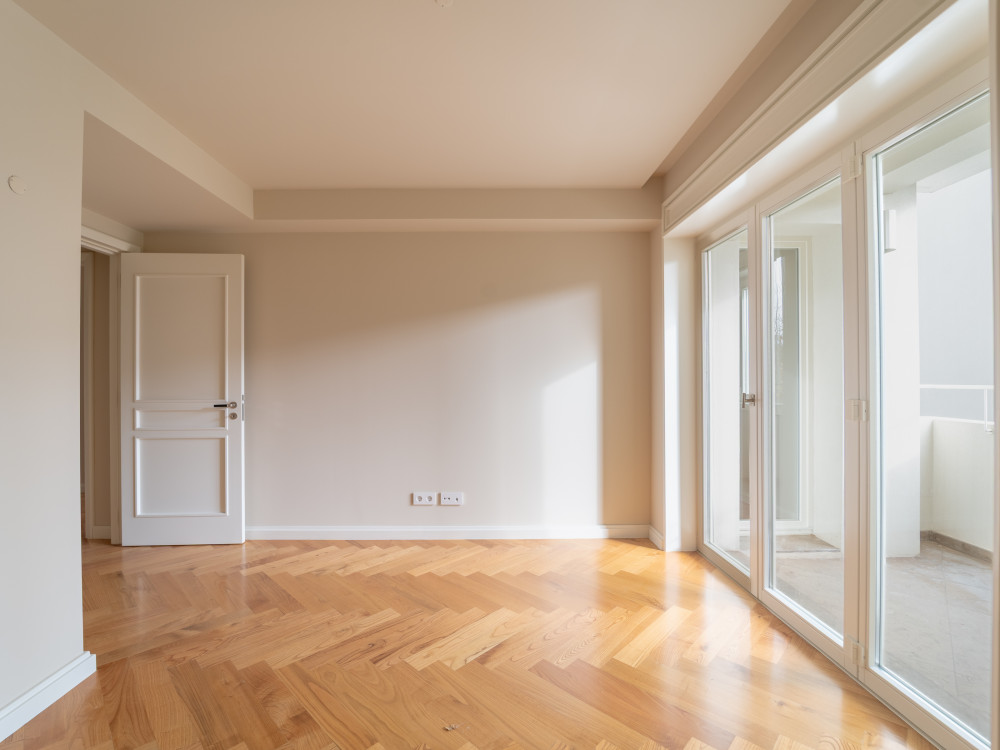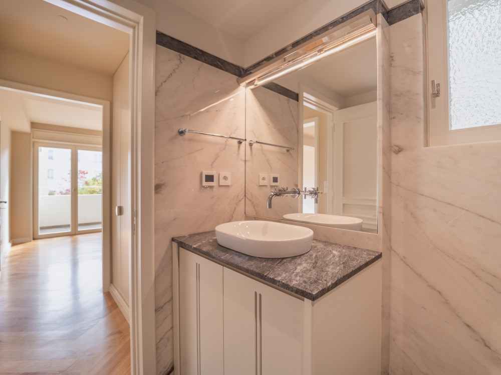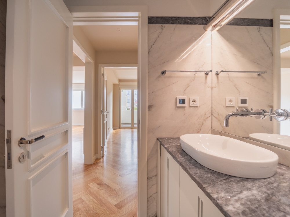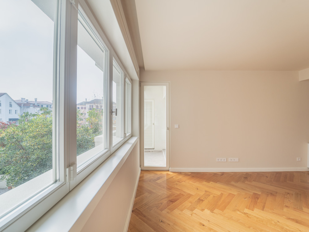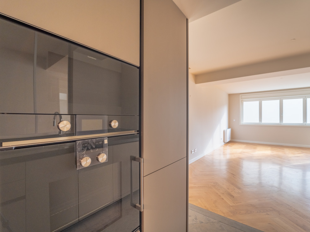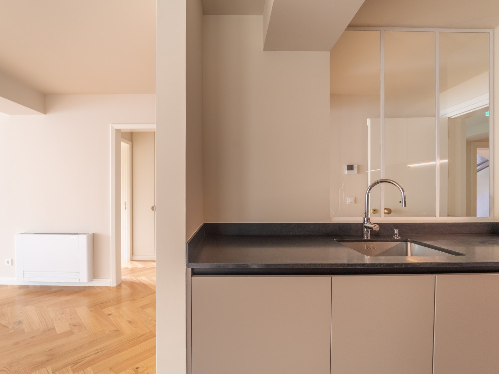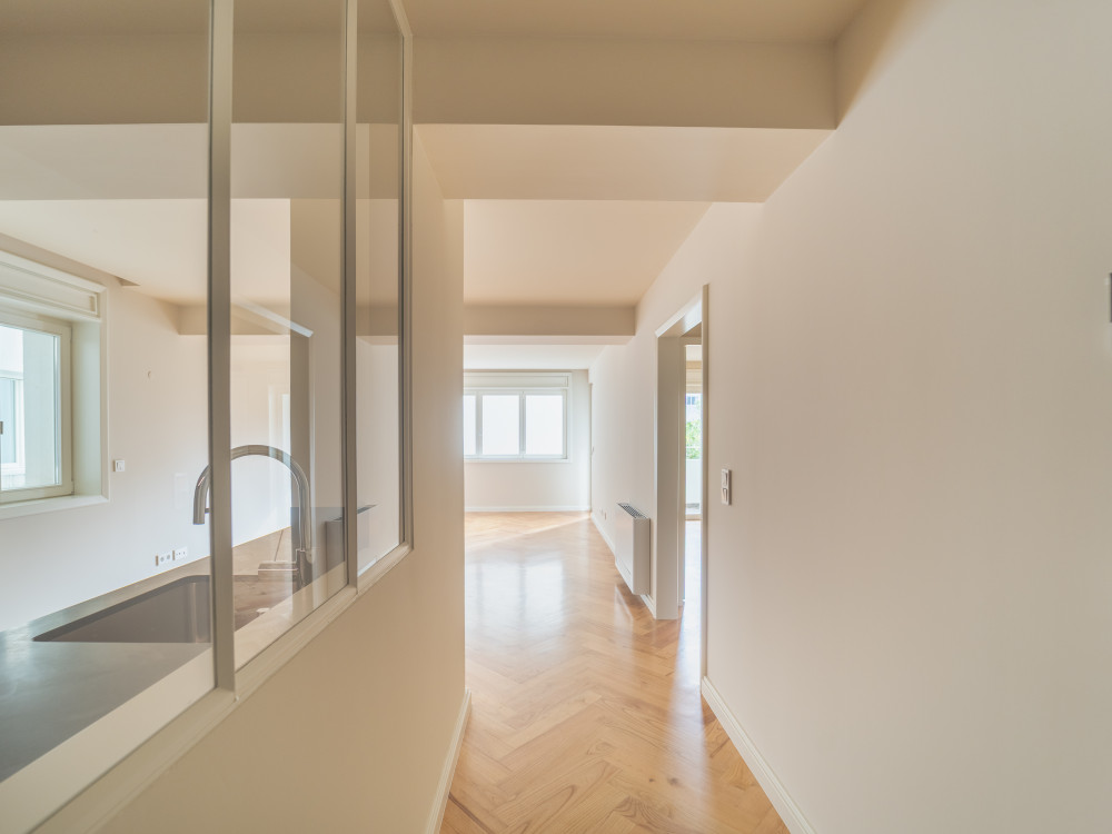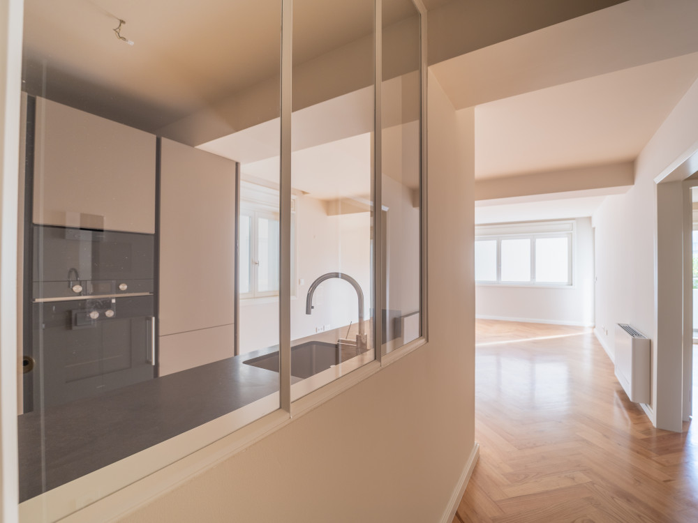 Located in an emblematic building from the 1930s, this flat is distinguished by its large interior areas and excellent natural light, benefiting from four-front windows and a pleasant view over the common garden, marked by abundant vegetation and an elegant water mirror, creating an atmosphere of tranquillity in the heart of the city.