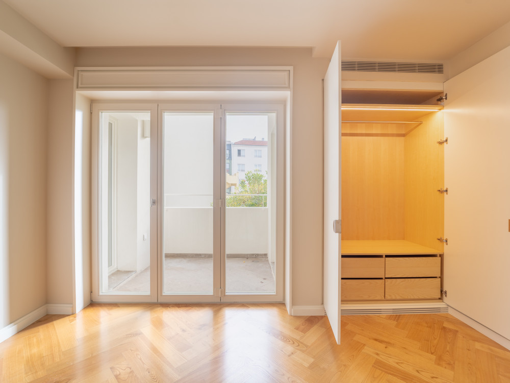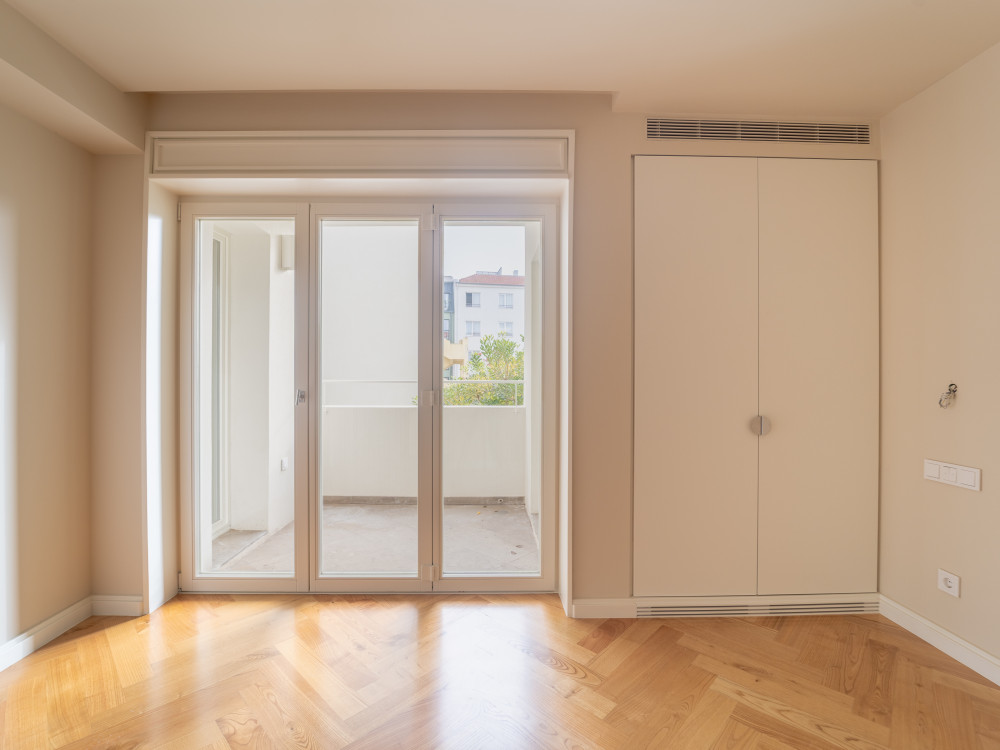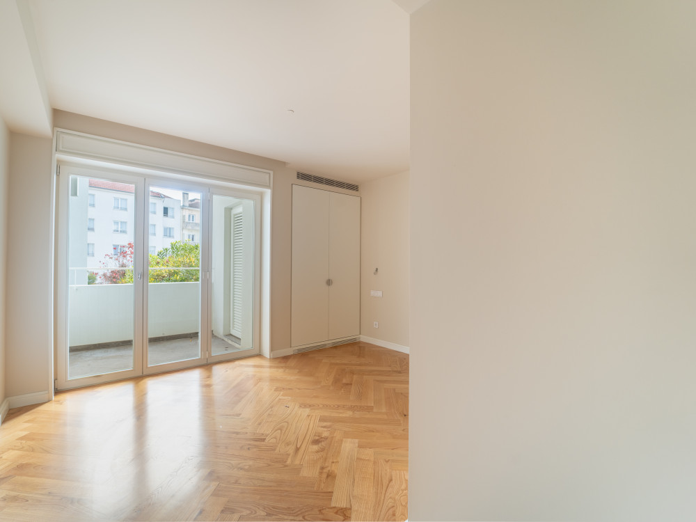 The room has a private balcony, reinforcing the luminosity and the connection to the outside. The bathroom stands out for its underfloor heating and Estremoz marble coverings, adding comfort and elegance to the space.