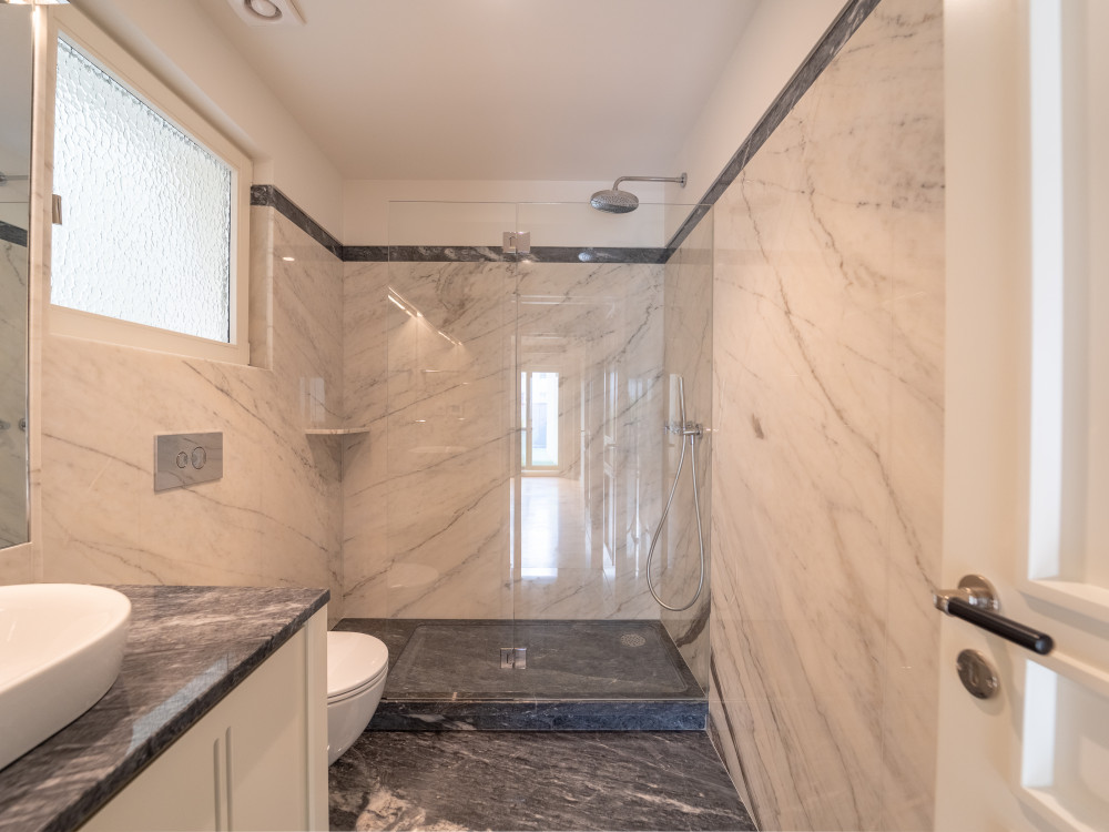 The social area is developed in open space, integrating a large and bright living room and a contemporary design kitchen, with Boffi furniture, fully equipped with Gaggenau and Siemens appliances, Zimbabwe granite countertops and Lourinhã marble flooring, reflecting a high standard of sophistication and functionality.