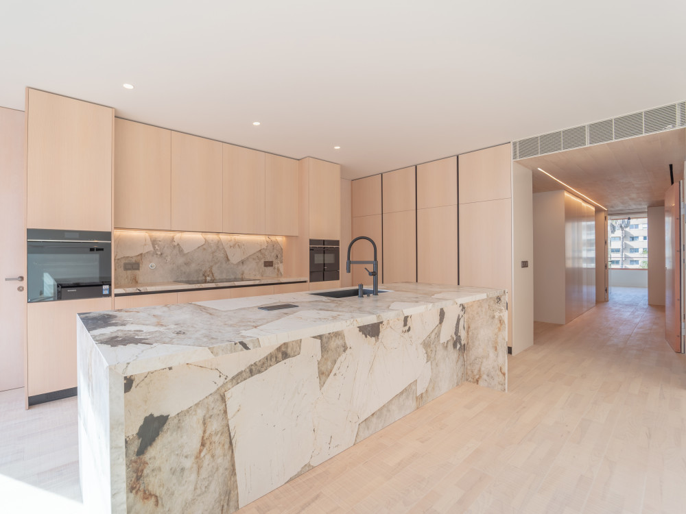 With approximately 233 m² of interior area, this flat is distinguished by its generous dimensions, intelligent organisation of spaces and high quality finishes. The social area impresses with its spaciousness — a living room and kitchen in open space with about 61 m², creating a sophisticated, fluid and ideal environment to live and receive with elegance. The modern kitchen is fully equipped and articulated with separate laundry.