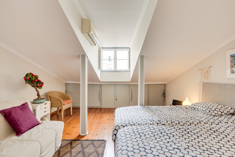 3-bedroom duplex apartment with 130 sqm of gross private area and frontal river view, located in Madragoa, Lisbon.Situated on the 3rd floor of a building without elevator, this two…