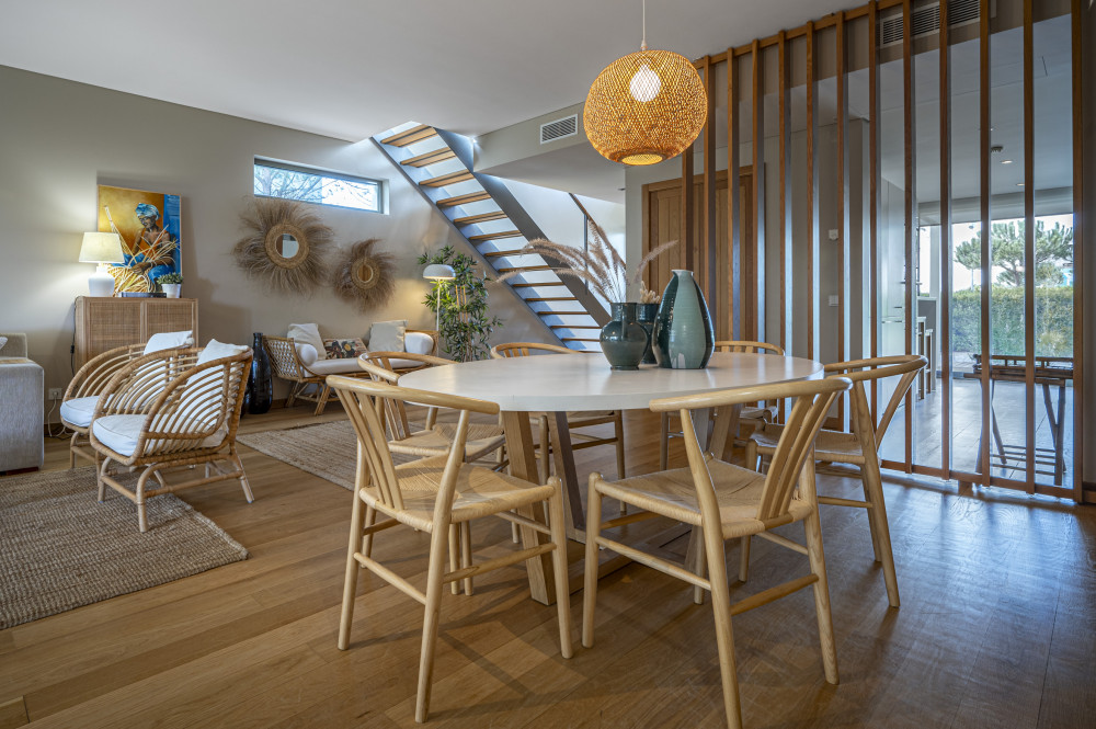 3 bedroom duplex villa in Troia, renovated, with 152 m² of gross private area and 33.5 m² of land, spread over three floors and inserted in the Ocean Village condominium. This residence offers three suites, four bathrooms, living and dining room in open space, fully equipped kitchen, outdoor terrace with dining area and exclusive garden, storage room and two parking spaces.