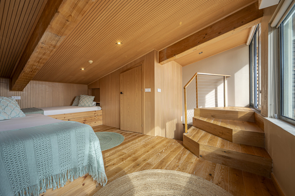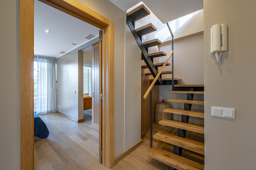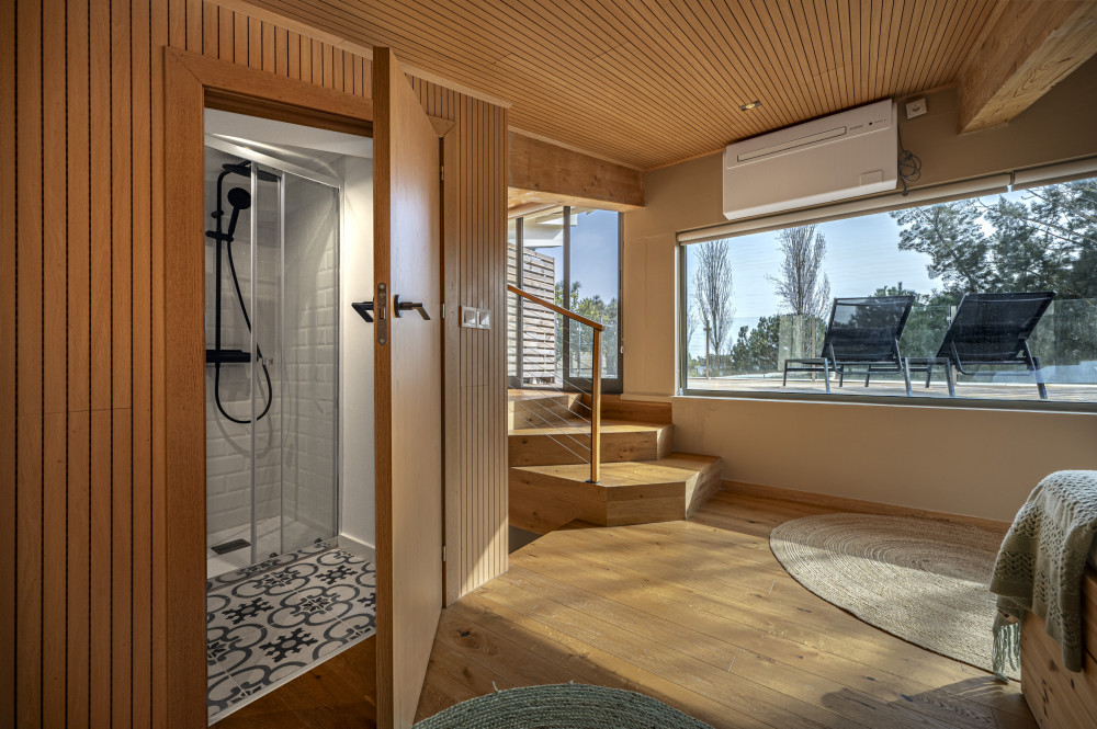 The ground floor has two suites, one of which is equipped with a bathroom with bathtub and shower, both with built-in wardrobes and good sun exposure, providing comfortable and functional environments. The attic was used to create a third suite, with two beds and access to an outdoor deck, perfect for moments of leisure and contemplation of the natural surroundings.