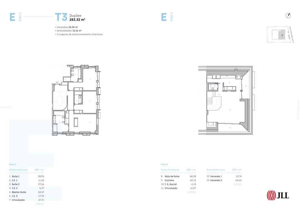 3‑bedroom duplex apartment with 283 sqm of gross private area, two balconies totaling 28 sqm, three independent garage spaces with pre‑installation for electric vehicle charging, bicycle storage and a storage room, located in the centre of Cascais.