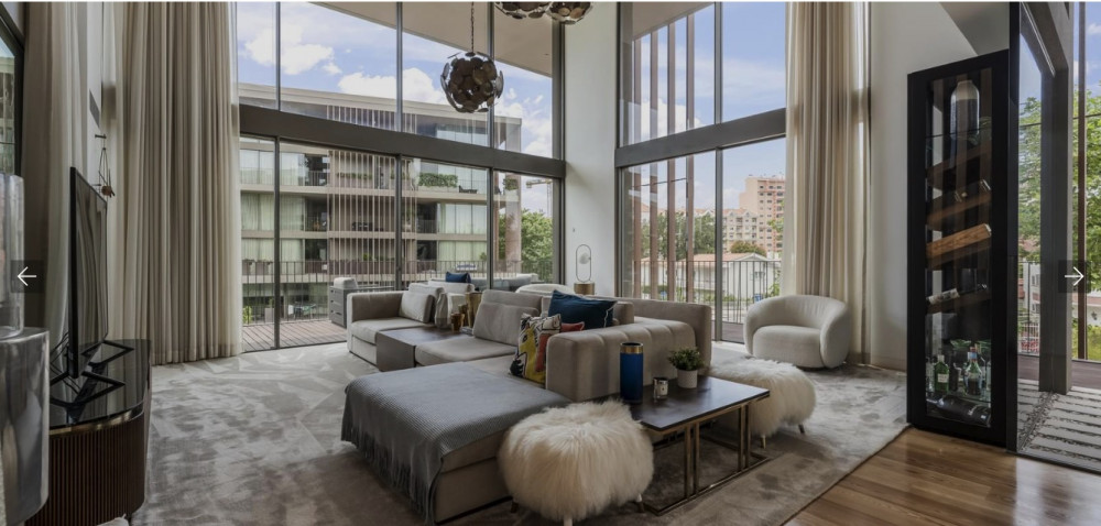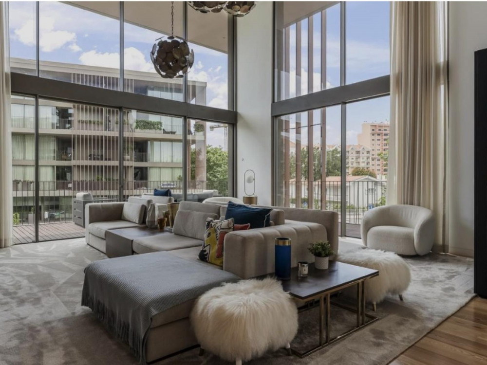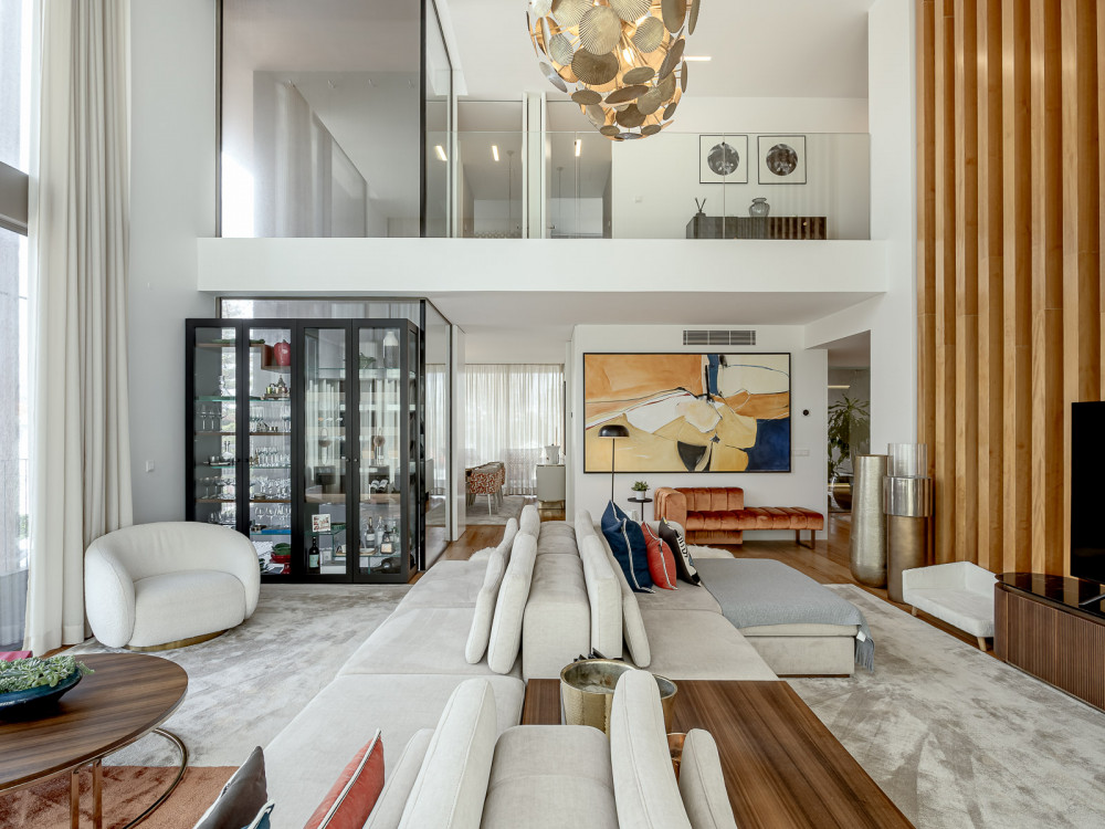 4 bedroom duplex flat in Cascais with panoramic balconies, swimming pool and 259 m² of private area, inserted in the prestigious One Living. This exclusive property is spread over two floors, offering a total of four suites, large social areas and high quality finishes. The main features include generous balconies with sea views, living room with double height ceilings, fully equipped kitchen in open space, laundry, private interior patio and garage.