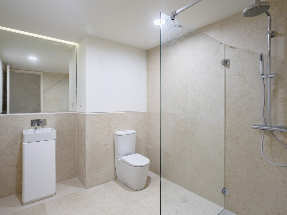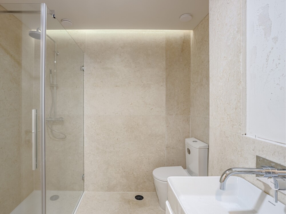 All rooms showcase high-quality finishes, including American oak floating floors in the living areas and bedrooms, and lioz stone in the bathrooms and kitchen.