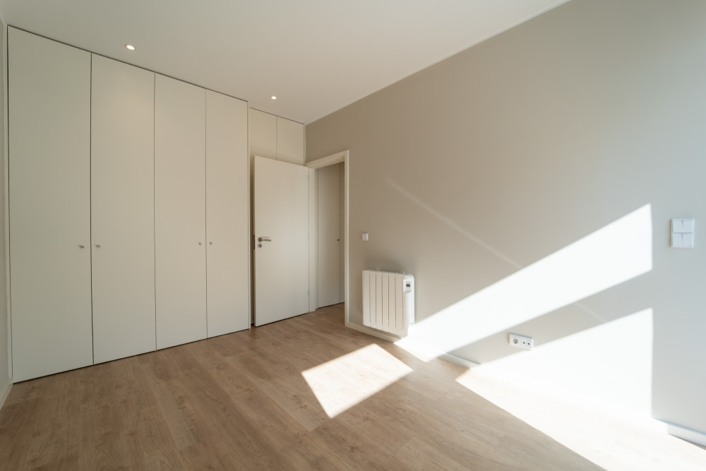 In the private area, the suite features a walk-in closet area and versatile additional space, ideal for an office or reading area. The second bedroom benefits from direct access to a balcony, providing a pleasant outdoor space.