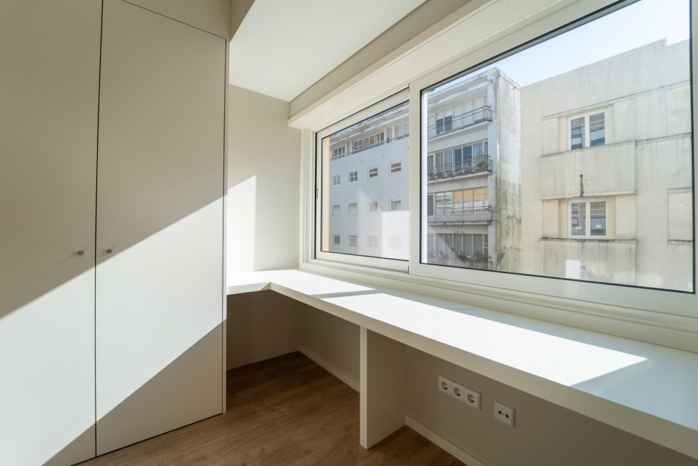 Originally designed as a T4, this flat was the subject of a complete and careful renovation, giving rise to a T2 of generous dimensions, where large spaces, functionality and comfort in everyday life are privileged.