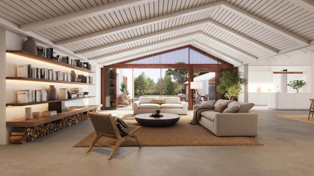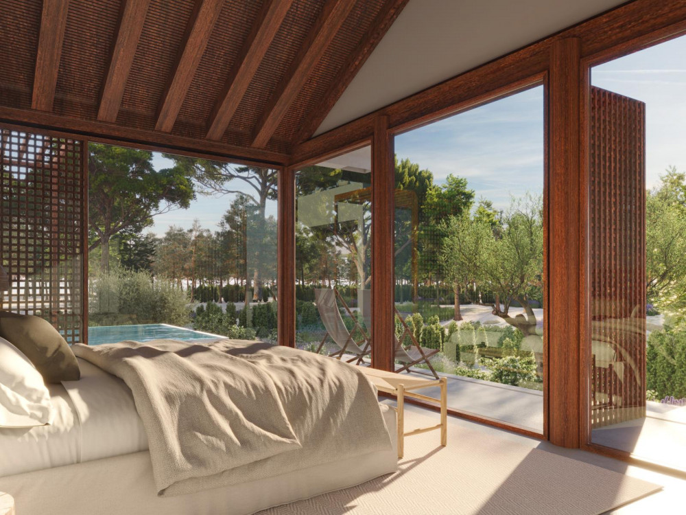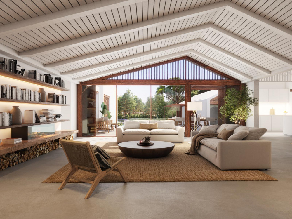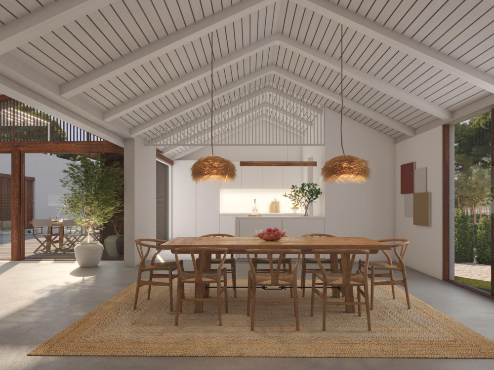 O projeto apresenta uma arquitetura contemporânea com 6 quartos e 7 casas de banho, uma ampla sala de estar/jantar com 101 m², cozinha aberta com 15 m², escritório e casa de banho social. No exterior, a moradia dispõe de várias zonas de deck com um total de 110 m², uma piscina com 40 m², uma área de fire pit com 10 m² e um terraço com vista para o pôr do sol.