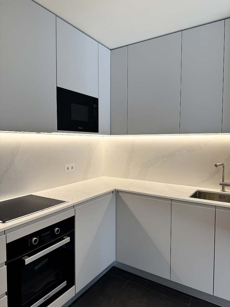 This brand new 1-bedroom apartment has never been used and features a modern, well-designed layout with high-quality finishes throughout. The living area is bright and open, connected to a fully equipped kitchen and leading directly onto a private terrace through large sliding glass doors that bring in plenty of natural light.
