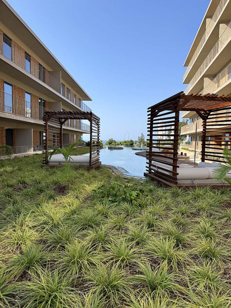 The condominium offers landscaped gardens inspired by the coastal environment, a beautifully designed outdoor swimming pool with an infinity effect, and several leisure areas, including shaded cabanas and relaxation spaces. It is an intimate and private development, ideal for those looking for comfort, quality, and a refined lifestyle by the sea.