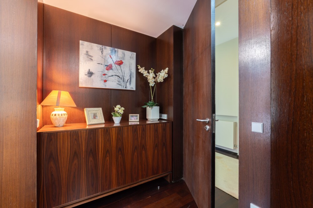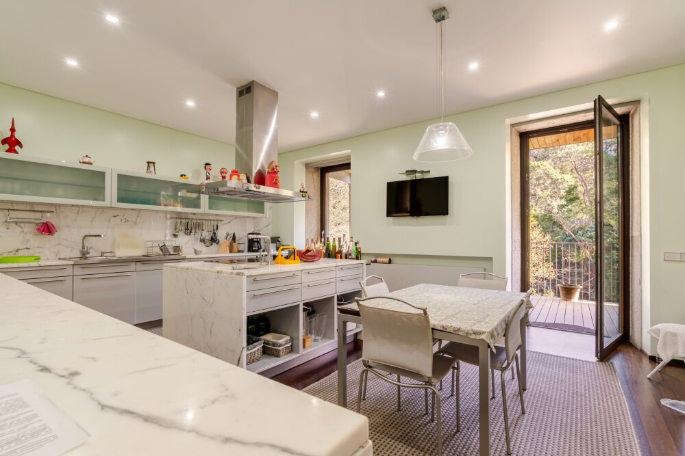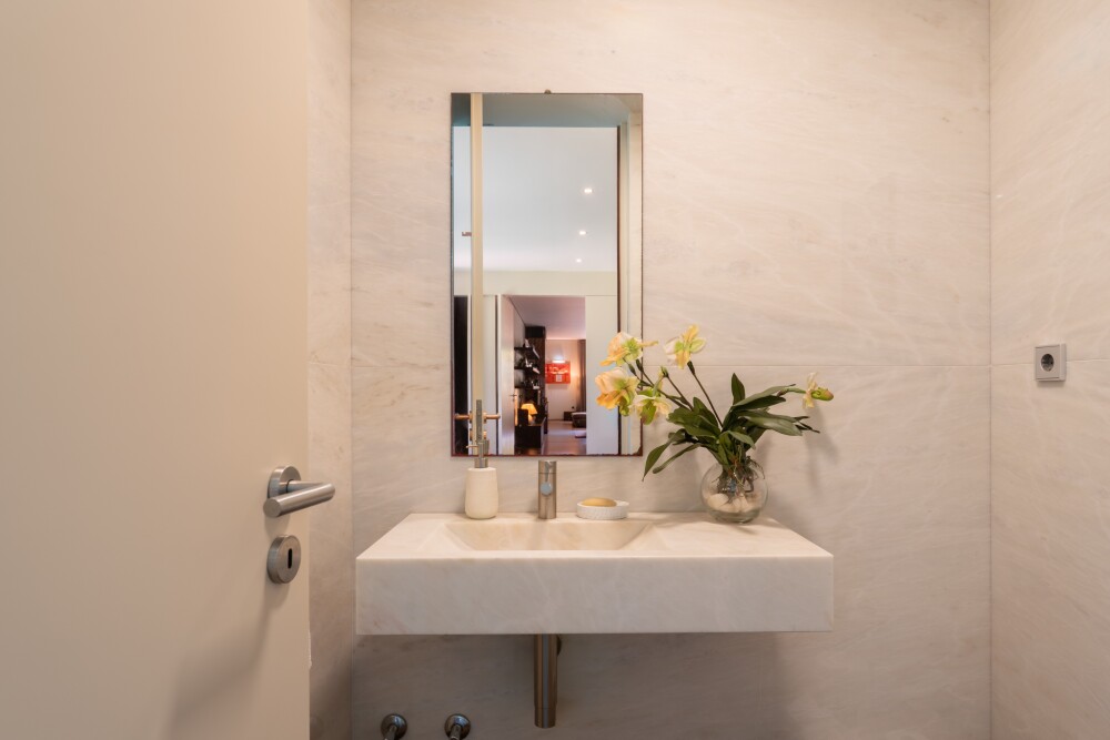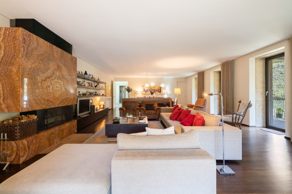 Among its main features are the high‑quality finishes, incorporating noble materials such as Afizélia wood, Estremoz marble and Carrara marble, giving the property a distinctive character of sophistication and comfort.