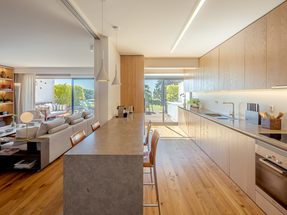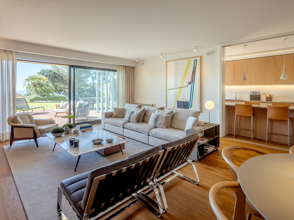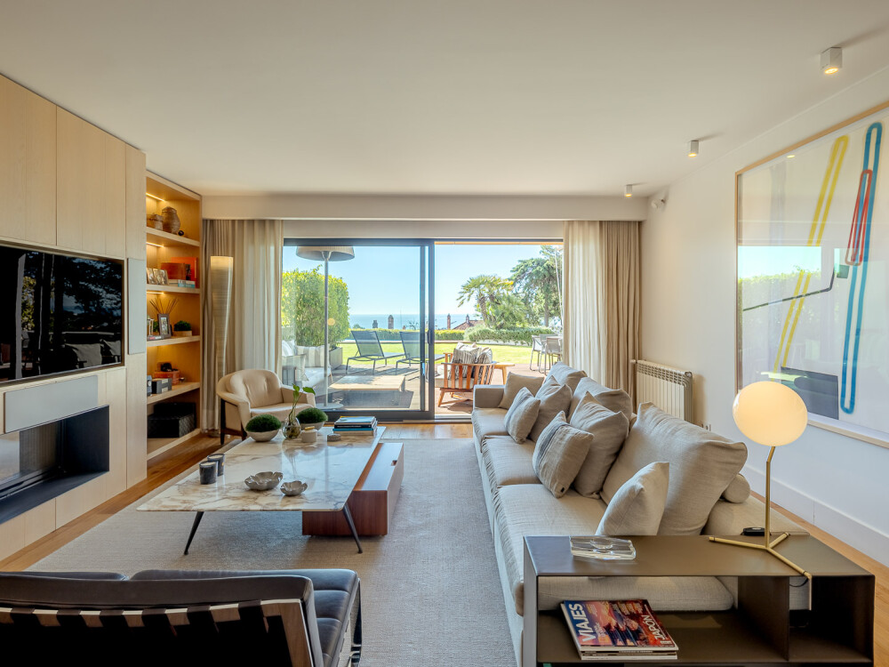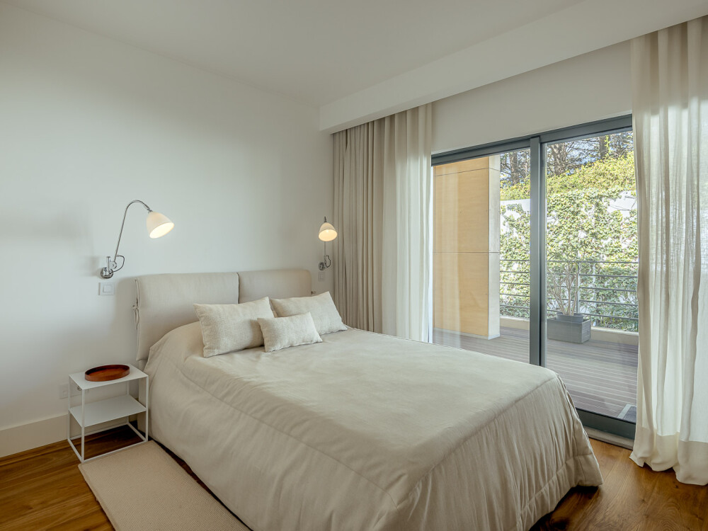 3‑bedroom apartment with 161 sqm of gross private area and 72 sqm of dependent gross area, terraces, sea view, four parking spaces and storage room, set within a condominium with garden and swimming pool, in Cascais.