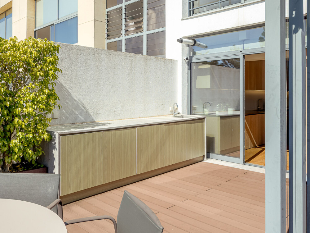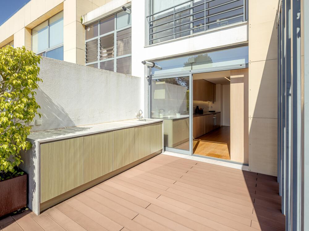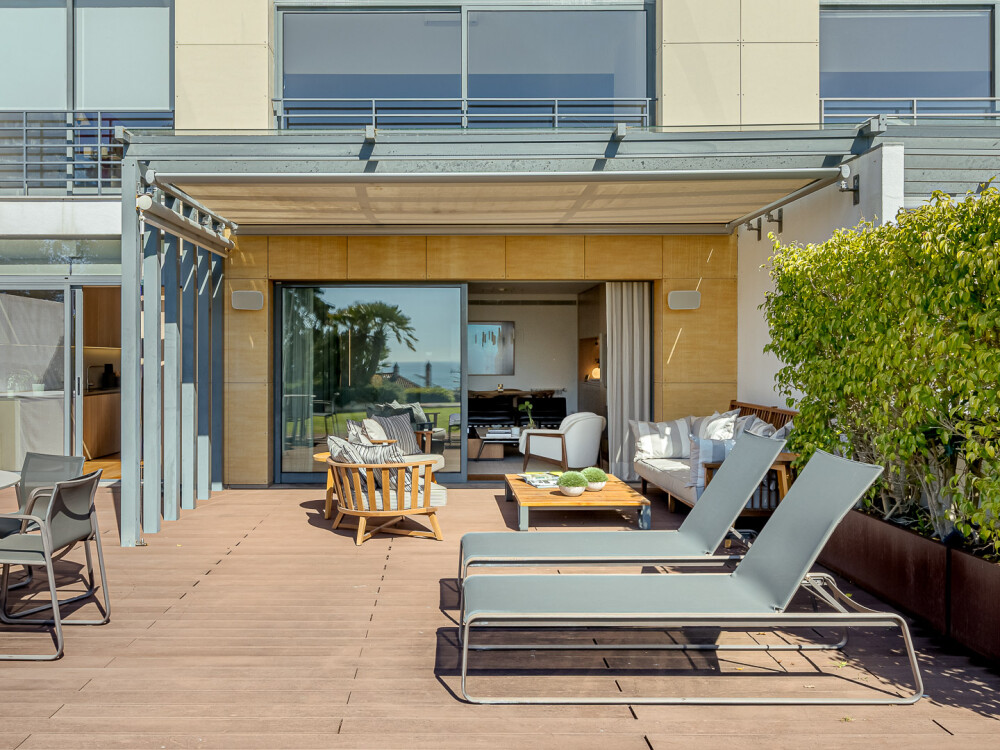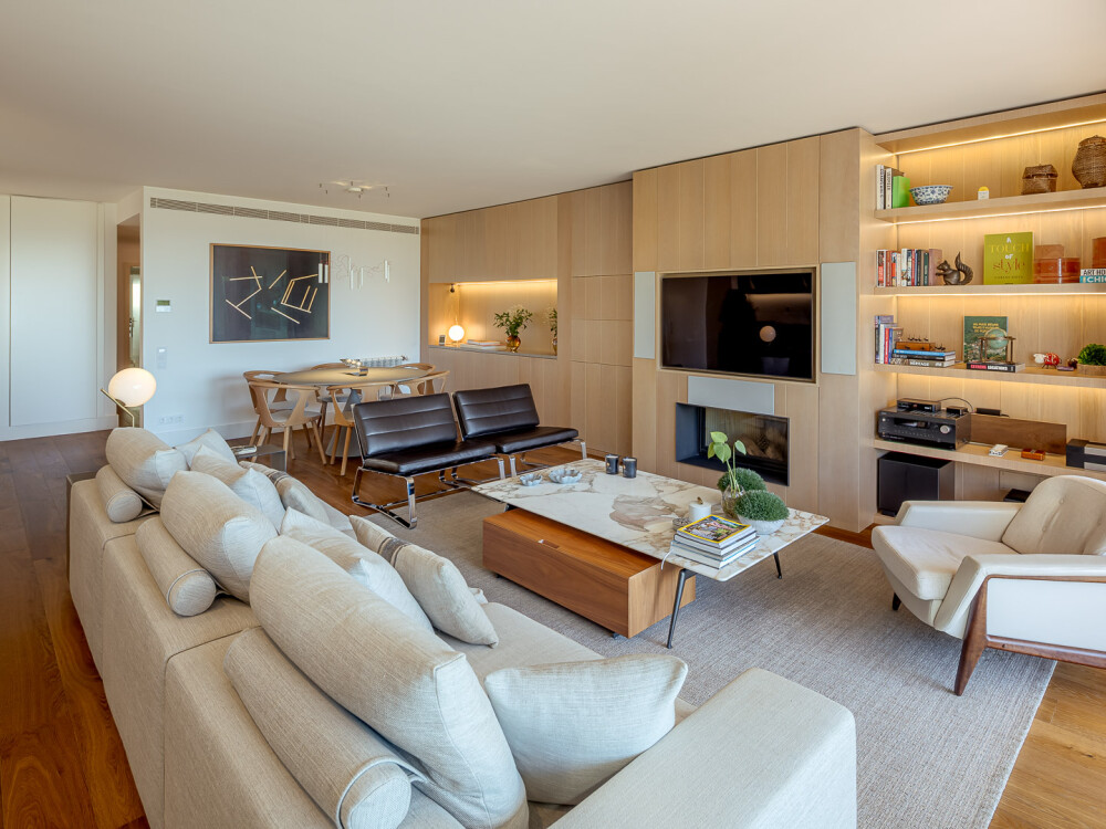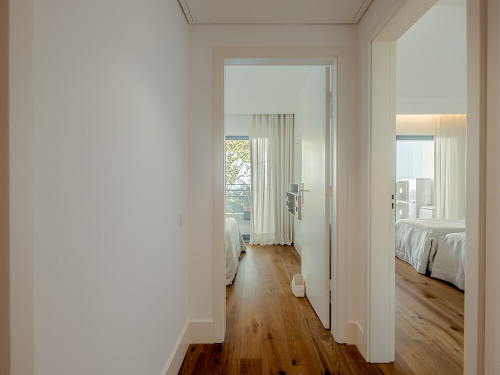 3‑bedroom apartment with 161 sqm of gross private area and 72 sqm of dependent gross area, terraces, sea view, four parking spaces and storage room, set within a condominium with garden and swimming pool, in Cascais.