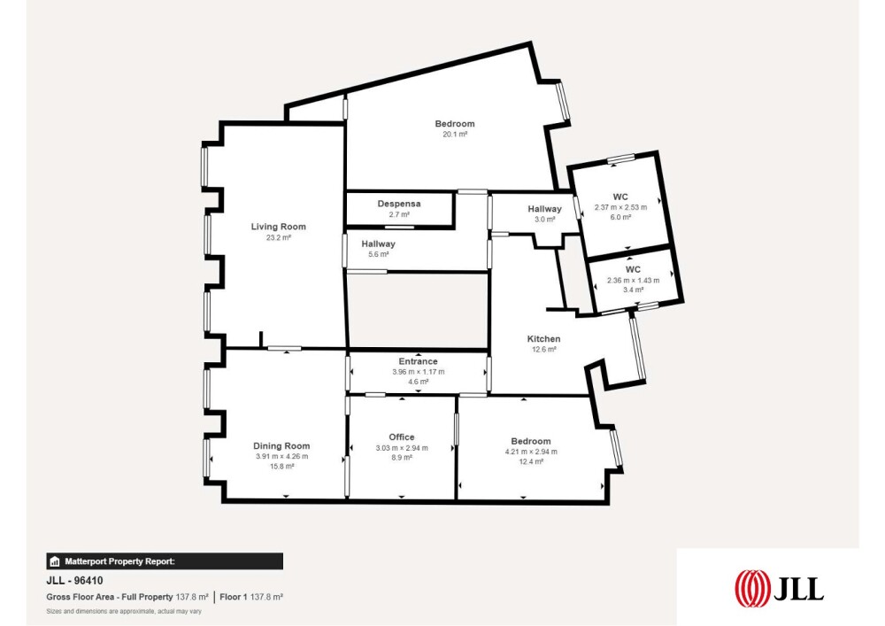 The 2nd floor has 150 sqm of gross private area and consists of a living room, dining room, kitchen, office, two bedrooms, two bathrooms, entrance hall and pantry.