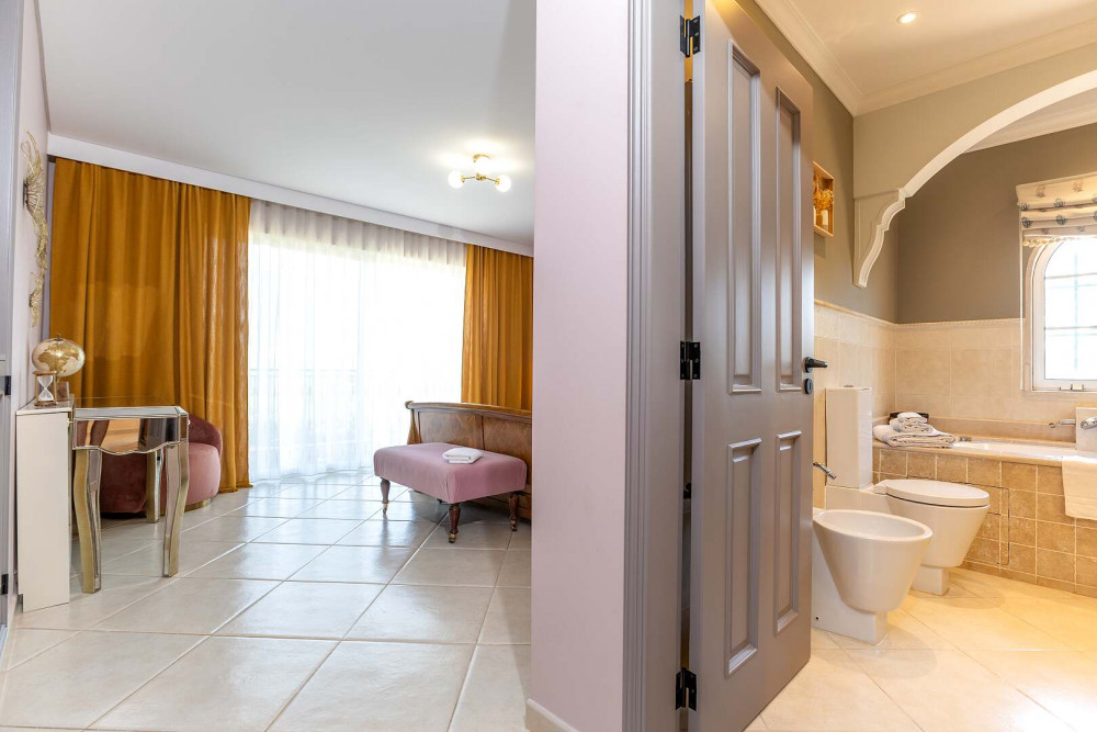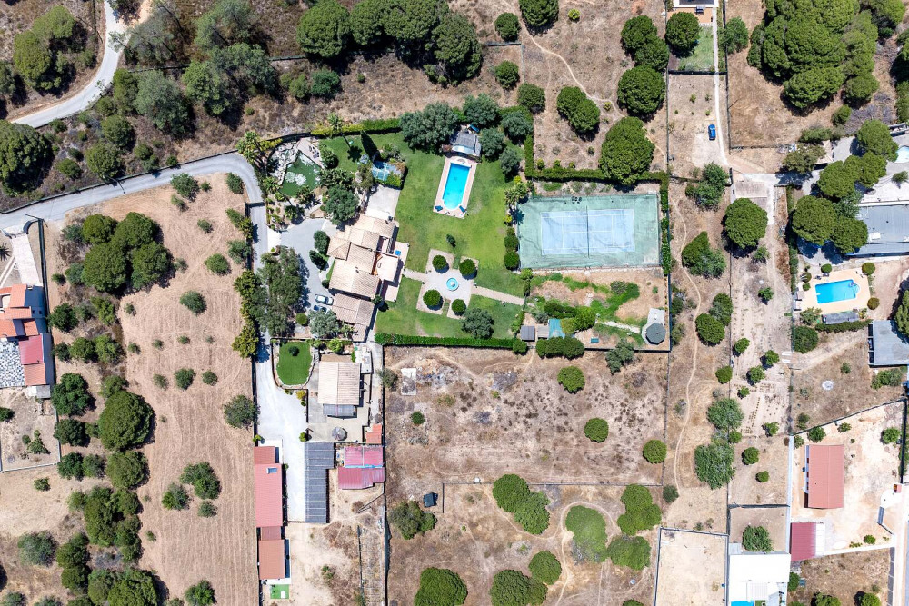 The estate centres around a magnificent 243 m² villa spanning two floors with five generously proportioned bedrooms, complemented by a sparkling swimming pool and mature Mediterranean gardens. Additional habitable cabins provide versatile guest accommodation, while the unique dance studio opens possibilities for wellness retreats, creative workshops, or specialised rental programmes that command premium rates.