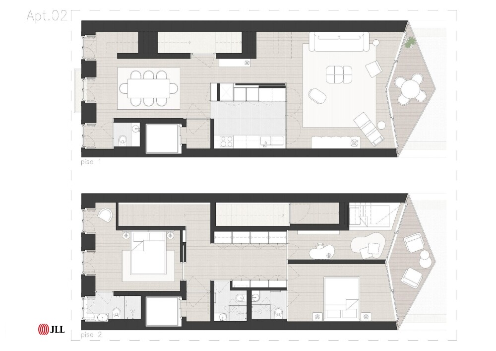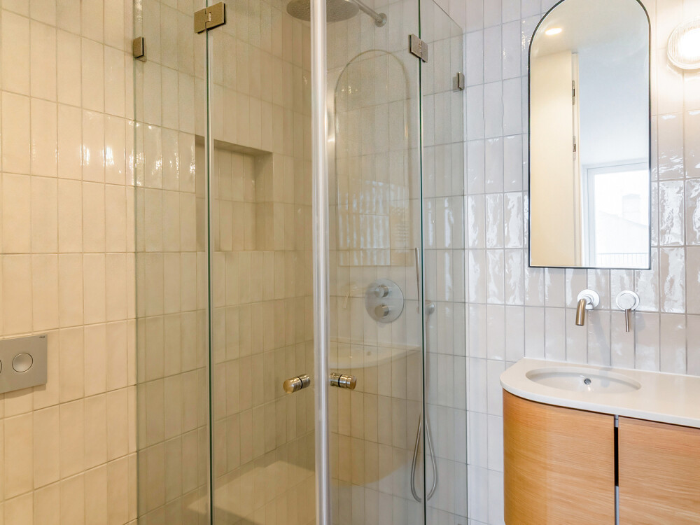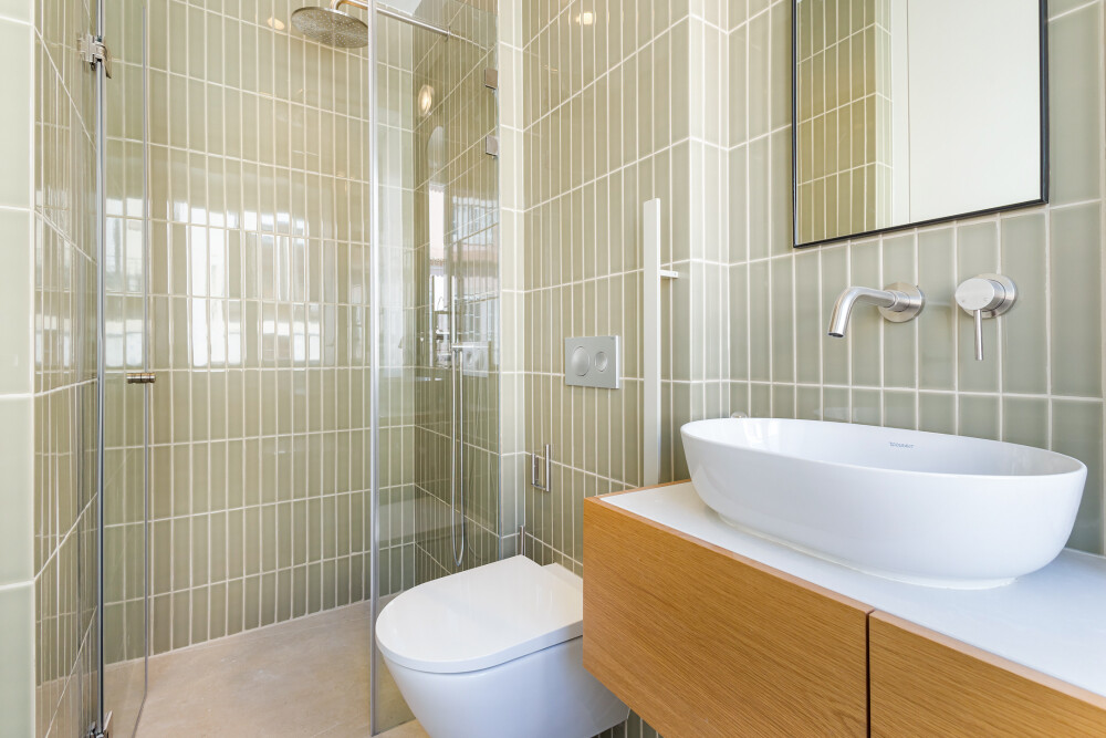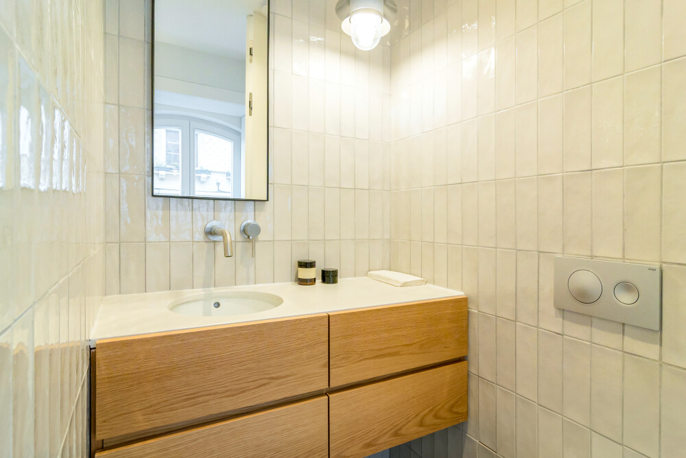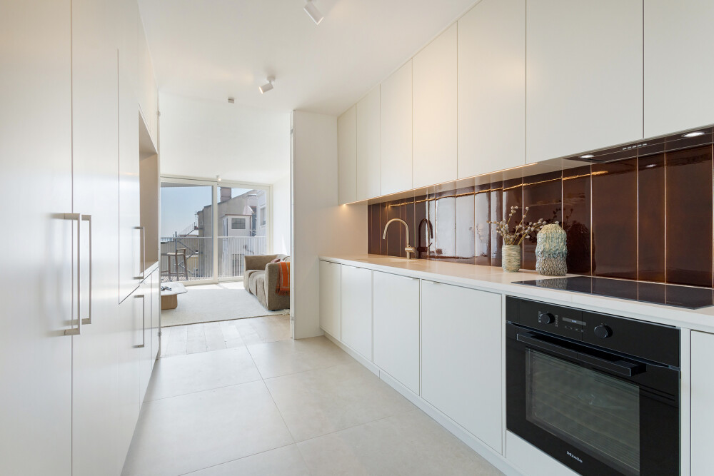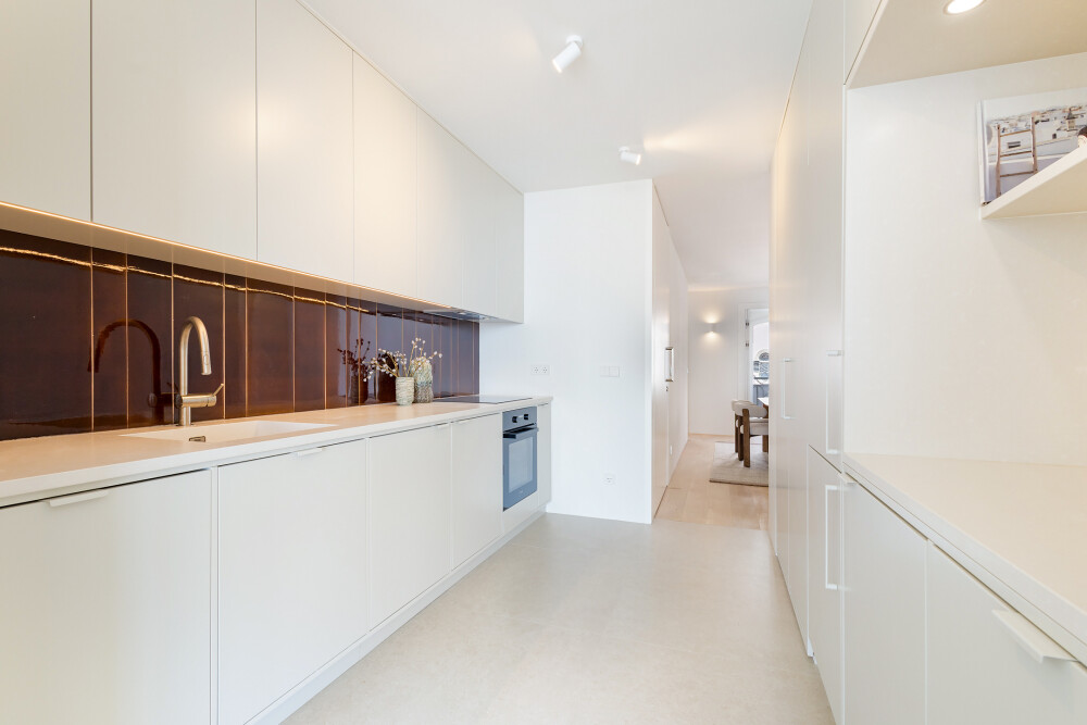 Designed by architect Falcão de Campos, the apartment features kitchens equipped with Miele appliances, tiled bathrooms, DURAVIT wall-hung sanitary ware, LUSSO STONE taps and ANTRAX towel warmers.