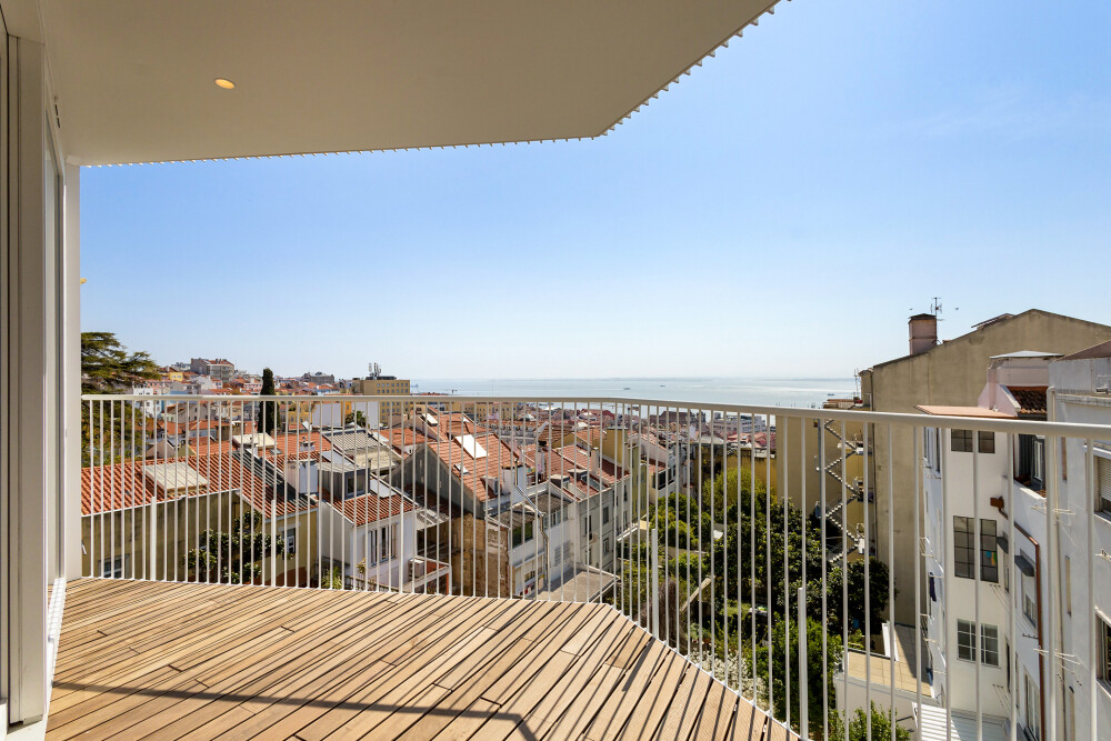 3-bedroom duplex apartment with 170 m² of private gross area, two balconies with unobstructed river views, south-facing and two parking spaces, located in Lapa, Lisbon.