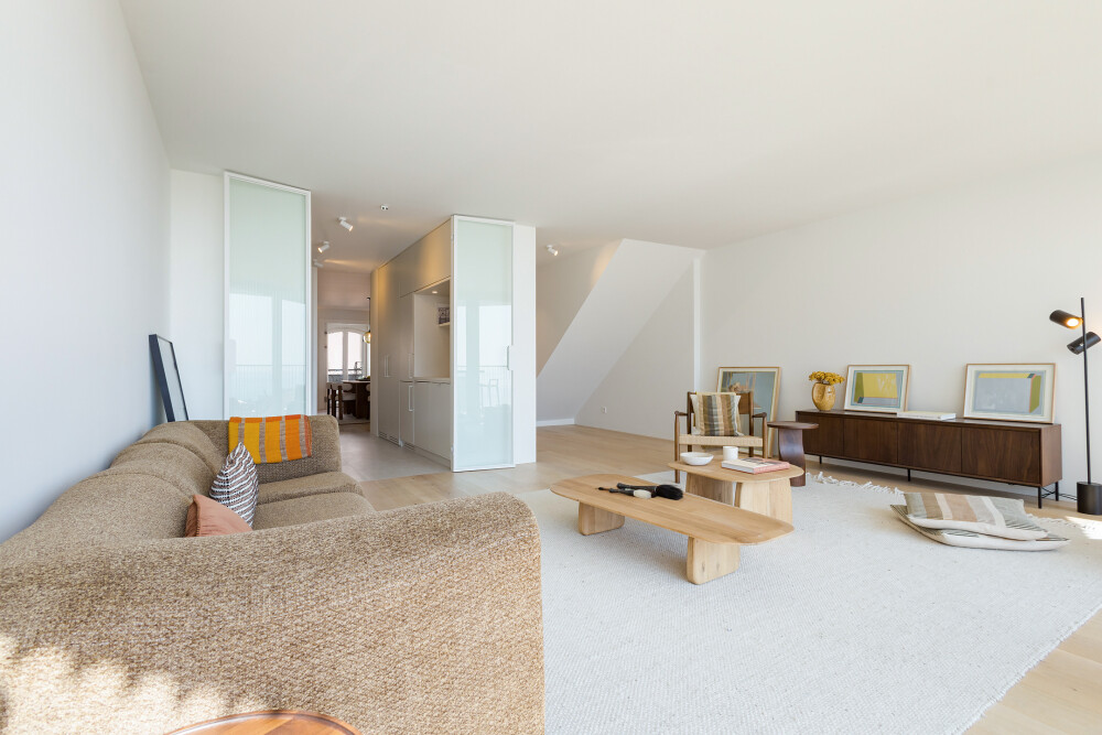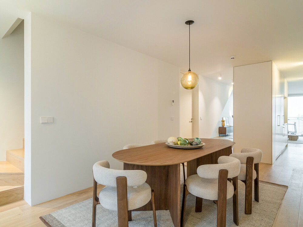 The apartment comprises, on the lower floor, a spacious south-facing living room that extends onto the balcony.