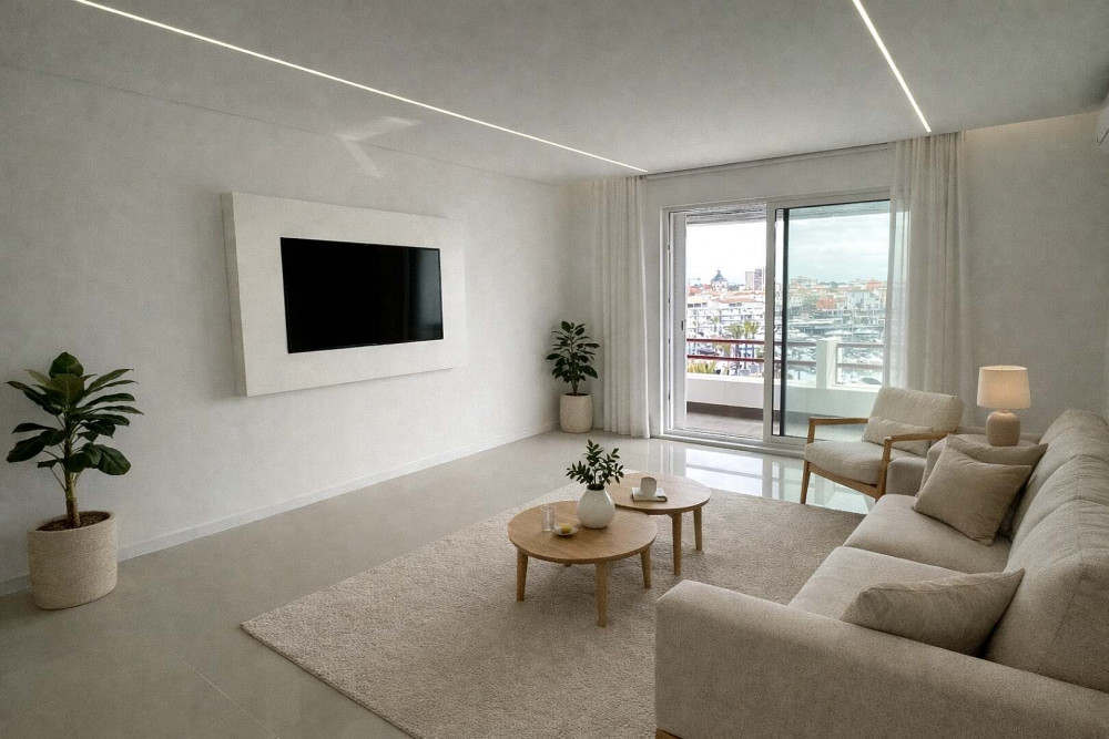 Set on the front line of Vilamoura Marina, this two-bedroom, three-bathroom apartment has undergone a complete, back-to-structure refurbishment, delivering a level of finish and specification that aligns with a new-build product, without the compromise of location.