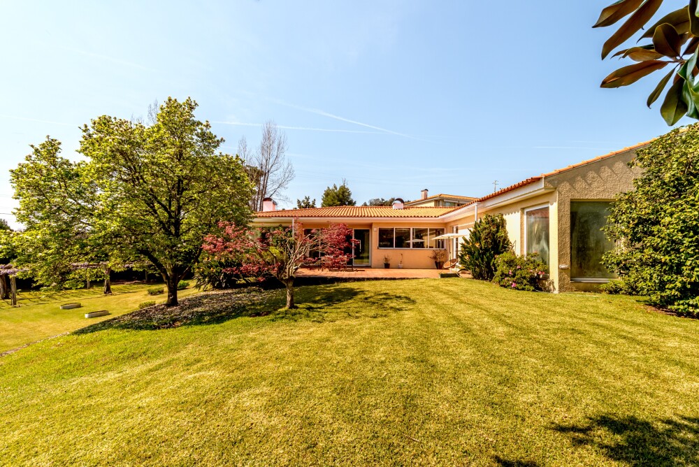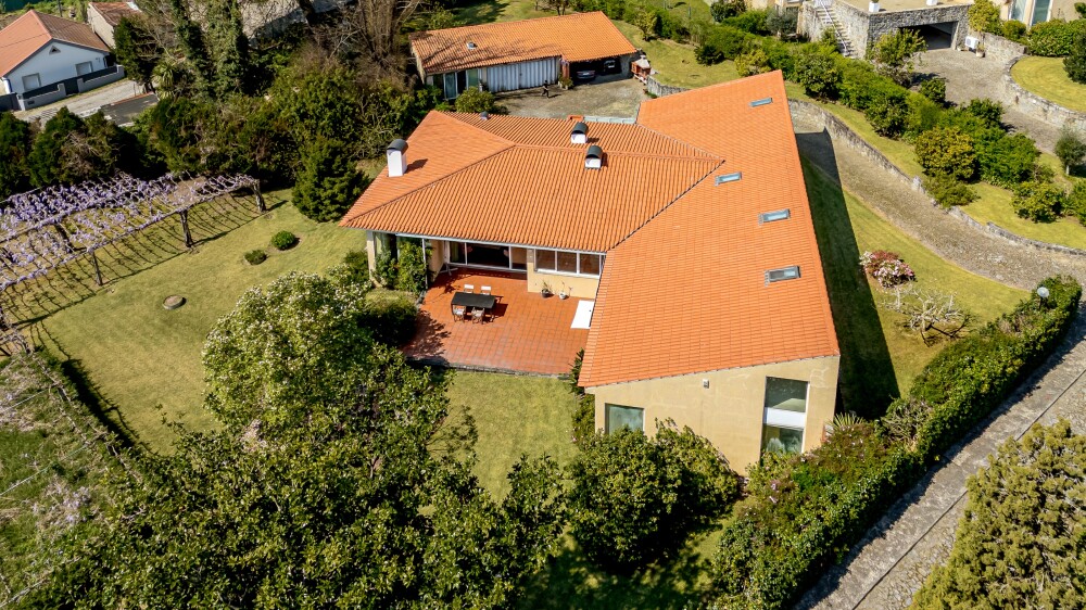 Single-storey 5+1-bedroom villa with 412 m² of gross construction area, garden, terrace, and three parking spaces, set on a 2,000 m² plot, in the private condominium Quinta de Fontelas, with swimming pool and 24-hour security, in Amares, Braga.