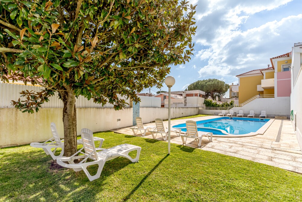 The condominium offers a shared swimming pool and a children’s playground.