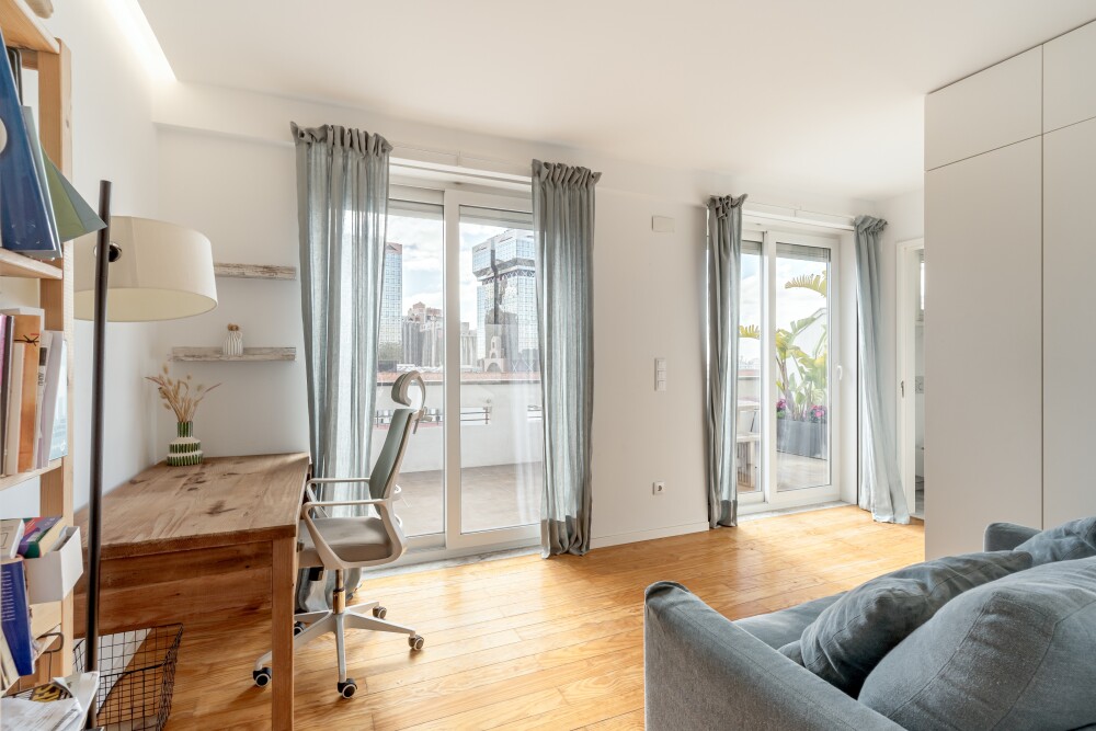 3‑bedroom duplex penthouse apartment with 156 sqm of gross private area, two terraces measuring 27 sqm and 17 sqm, open views over the city and the river, and one parking space, lo…