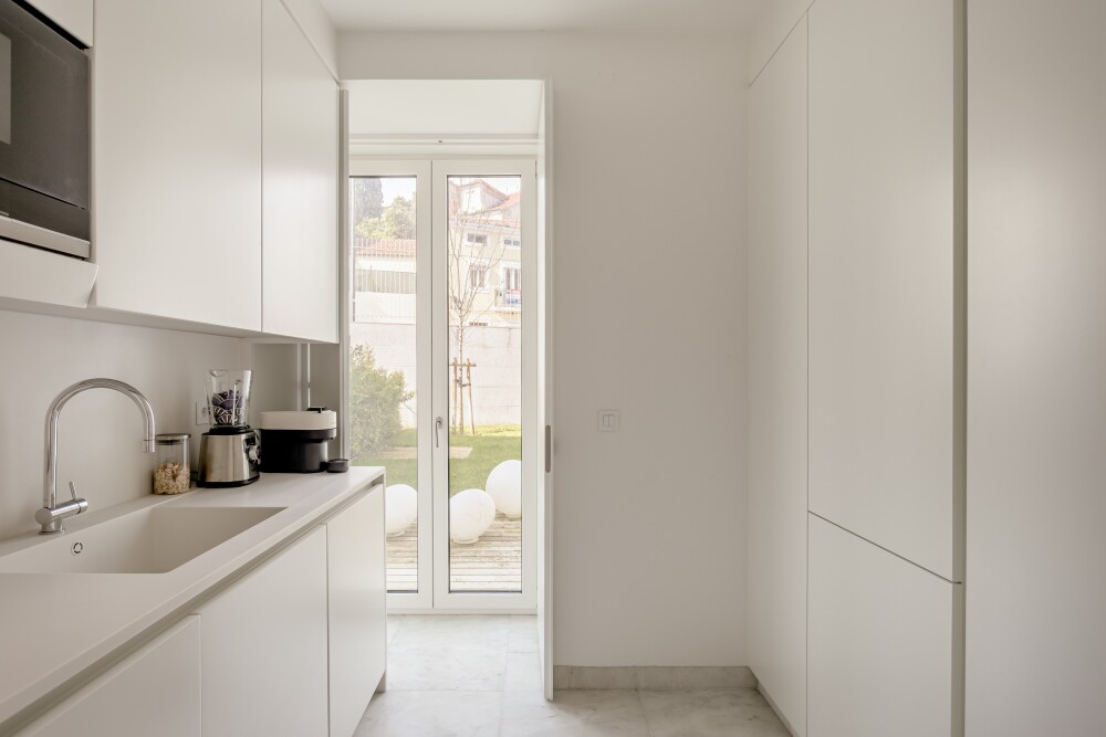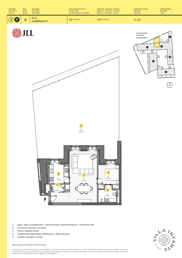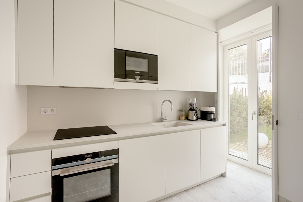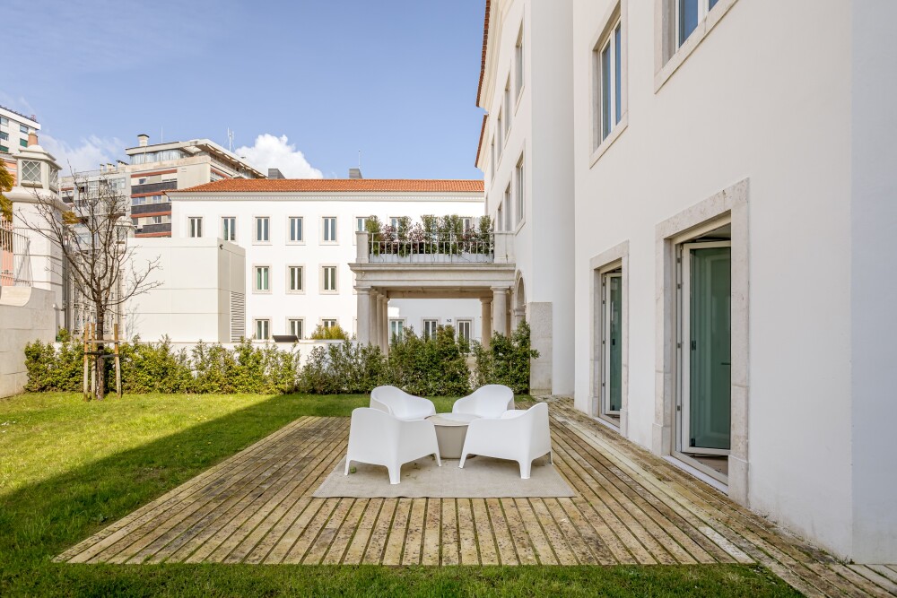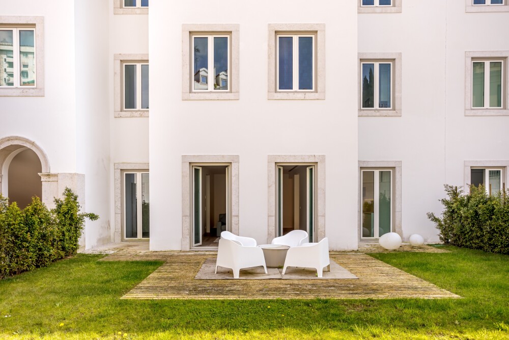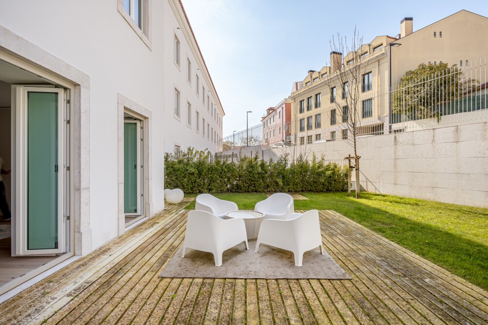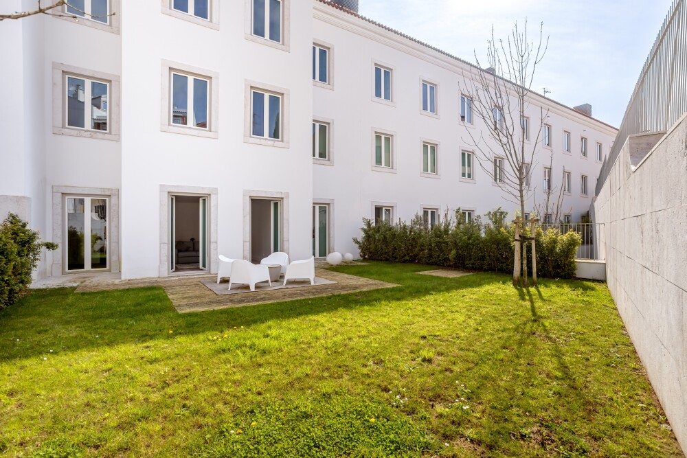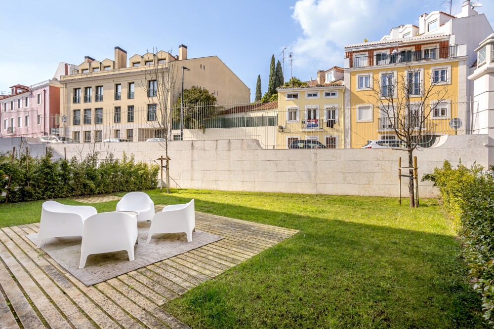 1‑bedroom apartment with 83 sqm of gross private area, a private garden of 137 sqm and one parking space, in the Villa Infante condominium, in Estrela, Lisbon.The apartment compris…